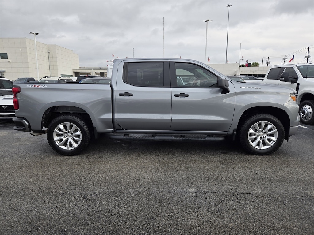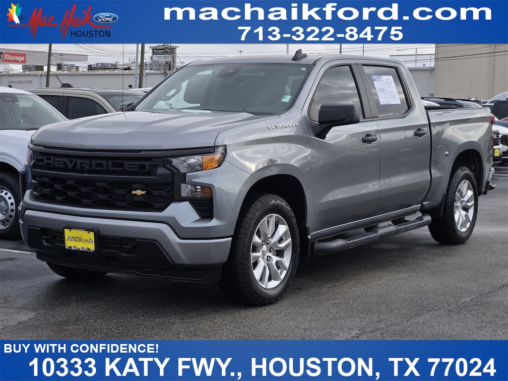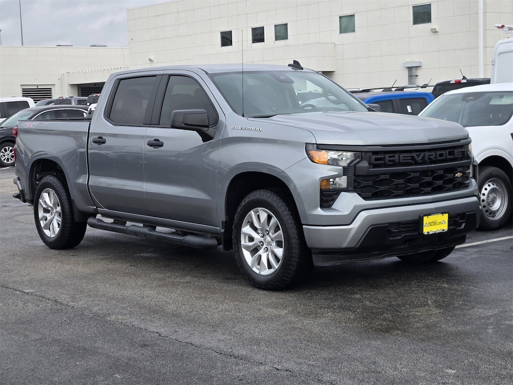 Thanks for Looking. Sterling Gray Metallic 2023 Chevrolet Silverado 1500 Custom 4WD 8-Speed Automatic 2.7L Turbo Clean Carfax, One Owner Carfax, Silverado 1500 Custom, 4D Crew Cab, 2.7L Turbo, 8-Speed Automatic, 4WD, Sterling Gray Metallic, Jet Black w/Cloth Seat Trim, Custom Convenience Package, Custom Value Package, Electric Rear-Window Defogger, EZ Lift Power Lock & Release Tailgate, LED Cargo Area Lighting, Remote Vehicle Starter System, Theft Deterrent System (Unauthorized Entry), Trailering Package.