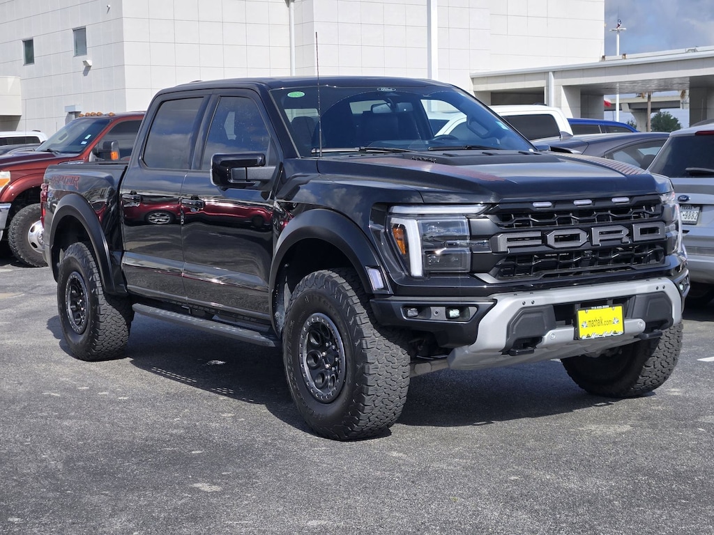 Equipment Group 802A Raptor 37 (Alcantara Suede & Leather RECARO Front Seats, Carbon Fiber Interior Appliques, Dual Valve Shocks, Modular Front Bumper, and Wheels: Raptor 37 Unique 17" Cast Aluminum), F-150 Raptor, Ford Gold Certified Certified, 4D SuperCrew, 3.5L V6 EcoBoost, 10-Speed Automatic, 4WD, Agate Black Metallic, Black w/Leather-Trimmed Bucket Seats, Navigation system: Connected Navigation, Twin Panel Moonroof, 14 Speakers, 17" Cast Aluminum Wheels, 4-Wheel Disc Brakes, ABS brakes, Adaptive suspension, Adjustable pedals, Air Conditioning, Alloy wheels, AM/FM radio: SiriusXM with 360L, Auto High-beam Headlights, Auto tilt-away steering wheel, Auto-dimming door mirrors, Auto-dimming Rear-View mirror, Automatic temperature control, Brake assist, Bumpers: body-color, Compass, Delay-off headlights, Driver door bin, Driver vanity mirror, Dual front impact airbags, Dual front side impact airbags, Electronic Locking w/4.10 Axle Ratio, Electronic Stability Control, Emergency communication system: SYNC 4 911 Assist, Front anti-roll bar, Front Bucket Seats, Front Center Armrest, Front dual zone A/C, Front fog lights, Front License Plate Bracket, Front reading lights, Front wheel independent suspension, Fully automatic headlights, Garage door transmitter, Heads-Up Display, Heated door mirrors, Heated front seats, Heated rear seats, Heated steering wheel, Illuminated entry, Lane Departure Warning System, Leather Trim Seats, Low tire pressure warning, Memory seat, Occupant sensing airbag, Outside temperature display, Overhead airbag, Overhead console, Panic alarm, Passenger door bin, Passenger vanity mirror, Pedal memory, Power door mirrors, Power driver seat, Power passenger seat, Power steering, Power windows, Radio data system, Radio: B&O Unleashed Sound System by Bang & Olufsen, Rain sensing wipers, Rear reading lights, Rear step bumper, Rear window defroster, Remote keyless entry, Security system, Speed control, Speed-sensing steering, Split folding rear seat, Steering wheel memory, Steering wheel mounted audio controls, SYNC 4 w/Enhanced Voice Recognition, Tachometer, Telescoping steering wheel, Tilt steering wheel, Traction control, Trip computer, Turn signal indicator mirrors, Variably intermittent wipers, and Ventilated front seats. Certified. Agate Black Metallic 2024 Ford F-150 Raptor 4WD 10-Speed Automatic 3.5L V6 EcoBoost Clean Carfax, Gold Certified, F-150 Raptor, 4D SuperCrew, 3.5L V6 EcoBoost, 10-Speed Automatic, 4WD, Agate Black Metallic, Black w/Leather-Trimmed Bucket Seats, Alcantara Suede & Leather RECARO Front Seats, Carbon Fiber Interior Appliques, Dual Valve Shocks, Equipment Group 802A Raptor 37, Modular Front Bumper, Navigation system: Connected Navigation, Twin Panel Moonroof, Wheels: Raptor 37 Unique 17" Cast Aluminum.