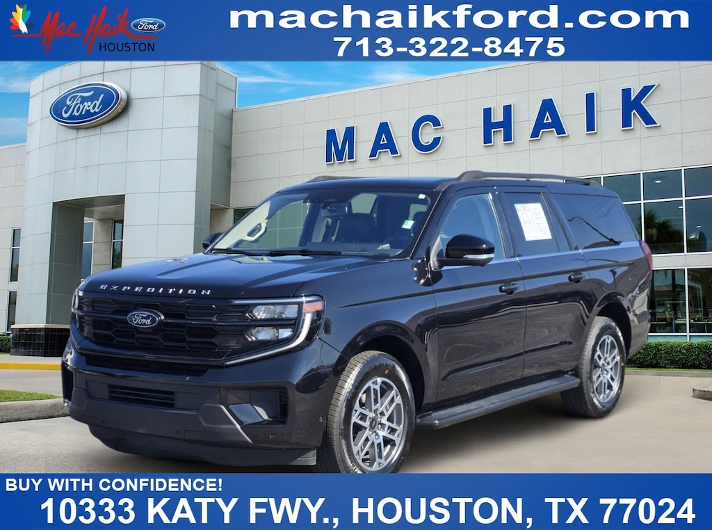 Thanks for Looking. Agate Black Metallic 2025 Ford Expedition Max Active RWD 10-Speed Automatic EcoBoost 3.5L V6 GTDi DOHC 24V Twin Turbocharged One Owner Carfax, Gold Certified, Expedition Max Active, 4D Sport Utility, EcoBoost 3.5L V6 GTDi DOHC 24V Twin Turbocharged, RWD, Agate Black Metallic, Dark Gray w/ActiveX Front Heated Captain's Chairs, 110V/400W AC Power Outlet, 2nd Row Power-Folding Captain's Chairs, 360-Degree Zone Lighting, 3rd Row Flexible Seating, 3rd Row Vinyl Seats, 4-Door Intelligent Access (Lock/Unlock), ActiveX Front Heated Captain's Chairs, BlueCruise Equipped, Equipment Group 202A High Package, Flex Powered Console, Ford Split Gate, Front Side Laminated Glass, Heated Steering Wheel, Memory Driver Seat, Power Panoramic Vista Roof w/Power Sunshade, Power Tilt/Telescopic Steering Wheel w/Memory, Power-Folding Sideview Mirrors w/Autofold, Rain Sensing Wipers, SecuriCode Keyless Entry Keypad, Universal Garage Door Opener, USB Ports, Wheels: 20" Carbonized Gray Bright Machined Aluminum, Wireless Charging Pad.
