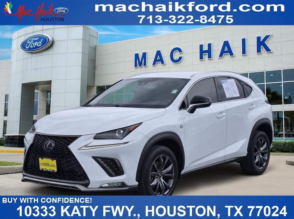 Why Buy From Mac Haik Ford Houston-- At Mac Haik Ford Houston, a family-owned and operated dealership proudly serving Houston for over 40 years, we make cars buy simple, transparent, and stress-free. ⢠Transparent Pricing â" No hidden fees, just honest, upfront pricing ⢠Competitive Deals â" Priced to compete with the best in the Texas market ⢠Easy Buying Process â" Shop, get pre-approved, and value your trade online ⢠Huge Selection â" New and Pre-owned and Certified vehicles ready to go ⢠Customer First â" Friendly, no-pressure experience ⢠Service You Can Count On â" Weâre here long after the sale. Vehicle Specs: F SPORT Package w/Summer Tires (Active Sound Control, Aluminum Pedals & Foot Rest, Black Headliner, Enhanced LED Daytime Running Lights, F SPORT Door Scuff Plates, F SPORT Side & Rear Badging, Front & Rear Performance Rods, Front Fog & Driving Lamp, High Clearance Lamp, Metallic Sport Trim, Sport Heated Steering Wheel w/Paddle, Sport Tuned Suspension, Turbo Boost Gauge and G-Meter, Unique Front Bumper w/Mesh Grille Insert, and Unique Gear Shift), NX 300 F Sport, 4D Sport Utility, 2.0L 16V DOHC, 6-Speed Automatic, FWD, Ultra White, Black/Blue w/F SPORT NuLuxe Seat Trim, 4-Wheel Disc Brakes, 8 Speakers, ABS brakes, Air Conditioning, Alloy wheels, AM/FM radio: SiriusXM, Apple CarPlay/Android Auto, Auto High-beam Headlights, Auto-dimming door mirrors, Automatic temperature control, Axle Ratio: 4.117, Brake assist, Bumpers: body-color, CD player, Deeply Bolstered Sport Front Bucket Seats, Delay-off headlights, Driver door bin, Driver vanity mirror, Dual front impact airbags, Dual front side impact airbags, Electronic Stability Control, Emergency communication system: Enform Safety Connect (complimentary 3-year subscription), Exterior Parking Camera Rear, F SPORT NuLuxe Seat Trim, Four wheel independent suspension, Front anti-roll bar, Front Bucket Seats, Front Center Armrest, Front dual zone A/C, Front fog lights, Front reading lights, Fully automatic headlights, Heated door mirrors, Illuminated entry, Knee airbag, Leather Shift Knob, Lexus Enform Remote, Lexus Enform Wi-Fi, Low tire pressure warning, Occupant sensing airbag, Outside temperature display, Overhead airbag, Panic alarm, Passenger door bin, Passenger vanity mirror, Power door mirrors, Power driver seat, Power passenger seat, Power steering, Power windows, Radio data system, Radio: 8-Speaker Premium Sound System, Rear anti-roll bar, Rear seat center armrest, Rear window defroster, Rear window wiper, Remote keyless entry, Roof rack: rails only, Security system, Speed control, Speed-sensing steering, Split folding rear seat, Spoiler, Steering wheel mounted audio controls, Tachometer, Telescoping steering wheel, Tilt steering wheel, Traction control, Trip computer, Turn signal indicator mirrors, Variably intermittent wipers, and Wheels: 18" x 7.5" F SPORT Split-5-Spoke Alloy.