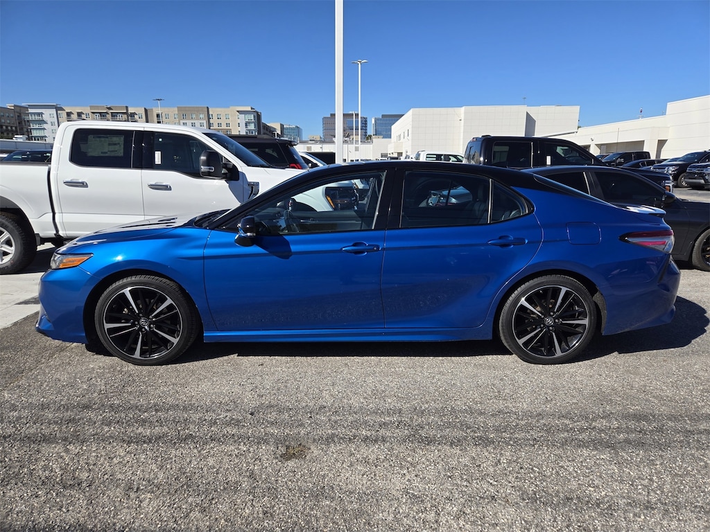 Thanks for Looking. Blue Streak Metallic 2019 Toyota Camry XSE FWD 8-Speed Automatic 2.5L I4 DOHC 16V One Owner Carfax, Camry XSE, 4D Sedan, 2.5L I4 DOHC 16V, 8-Speed Automatic, FWD, Blue Streak Metallic, Black w/Perforated Leather Seat Trim, Blackout Emblem Overlays, Blackout Package, Heated front seats, Leather Shift Knob, Lower Rocker Applique, Navigation Package, Panoramic Roof, Perforated Leather Seat Trim, Power passenger seat, Radio: Entune 3.0 Premium Audio w/JBL w/Clari-Fi, Rear Bumper Applique (Black), Spoiler, Wheels: 8.0J x 19" Black Machined-Finish Alloy.