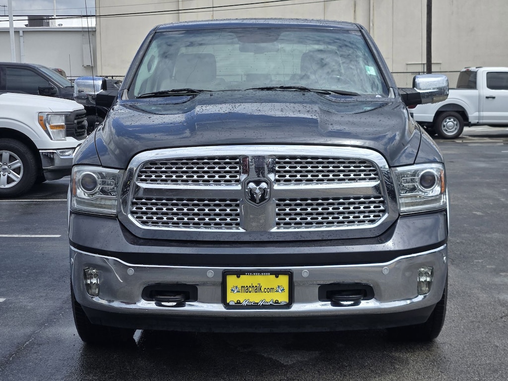 Convenience Group (Auto High Beam Headlamp Control, Keyless Enter-N-Go, Rain Sensitive Windshield Wipers, and Remote Proximity Keyless Entry), Quick Order Package 26H Laramie, 1500 Laramie, 4D Crew Cab, HEMI 5.7L V8 Multi Displacement VVT, 8-Speed Automatic, RWD, Maximum Steel Metallic Clearcoat, Light Frost Beige/Canyon Brown w/Leather Trim 40/20/40 Bench Seat or Leather Trimmed Bucket Seats, 10 Speakers, 115V Auxiliary Power Outlet, 20" x 9" Chrome Clad Aluminum Wheels, 3.21 Rear Axle Ratio, 4-Wheel Disc Brakes, 8.4" Touchscreen Display, ABS brakes, Active Grille Shutters, Adjustable pedals, Air Conditioning, Alloy wheels, AM/FM radio, Anti-Spin Differential Rear Axle, Audio Jack Input for Mobile Devices, Audio memory, Auto-dimming door mirrors, Auto-dimming Rear-View mirror, Automatic temperature control, Body Color Fender Flares, Brake assist, Bright Rotary Shifter, Bumpers: chrome, Compass, Delay-off headlights, Driver door bin, Driver vanity mirror, Dual front impact airbags, Dual front side impact airbags, Electronic Shift, Electronic Stability Control, Electronically Controlled Throttle, Emergency communication system: Uconnect Access, Engine Oil Heat Exchanger, Folding Flat Load Floor Storage, Front & Rear Rubber Floor Mats, Front anti-roll bar, Front Center Armrest w/Storage, Front dual zone A/C, Front fog lights, Front reading lights, Front wheel independent suspension, Fully automatic headlights, Garage door transmitter, GPS Antenna Input, Heated door mirrors, Heated Front Seats, Heated front seats, Heated Steering Wheel, Heated steering wheel, Heavy-Duty Engine Cooling, Hemi Badge, High Back Seats, Illuminated entry, Integrated Voice Command w/Bluetooth, Leather steering wheel, Leather Trim 40/20/40 Bench Seat, LED Bed Lighting, Low tire pressure warning, Media Hub (USB, AUX), Memory seat, Occupant sensing airbag, Outside temperature display, Overhead airbag, Overhead console, Panic alarm, ParkSense Front/Rear Park Assist System, ParkView Rear Back-Up Camera, Passenger door bin, Passenger vanity mirror, Pedal memory, Power 10-Way Memory Driver & 6-Way Passenger Seats, Power door mirrors, Power driver seat, Power passenger seat, Power steering, Power windows, Radio data system, Radio: Uconnect 3C w/8.4" Display, Rear 60/40 Split Folding Seat, Rear anti-roll bar, Rear seat center armrest, Rear step bumper, Remote keyless entry, Remote USB Port, Security system, SIRIUSXM Satellite Radio, Speed control, Split folding rear seat, Steering wheel mounted audio controls, Tachometer, Tilt steering wheel, Tip Start, Tow Hooks, Traction control, Trailer Brake Control, Trip computer, Turn signal indicator mirrors, Uconnect Access, Variably intermittent wipers, Ventilated Front Seats, Ventilated front seats, Voltmeter, and Wheel to Wheel Side Steps. Maximum Steel Metallic Clearcoat 2017 Ram 1500 Laramie RWD 8-Speed Automatic HEMI 5.7L V8 Multi Displacement VVT Clean Carfax, 1500 Laramie, 4D Crew Cab, HEMI 5.7L V8 Multi Displacement VVT, 8-Speed Automatic, RWD, Maximum Steel Metallic Clearcoat, Light Frost Beige/Canyon Brown w/Leather Trim 40/20/40 Bench Seat or Leather Trimmed Bucket Seats, Auto High Beam Headlamp Control, Convenience Group, Keyless Enter-N-Go, Quick Order Package 26H Laramie, Rain Sensitive Windshield Wipers, Remote Proximity Keyless Entry.