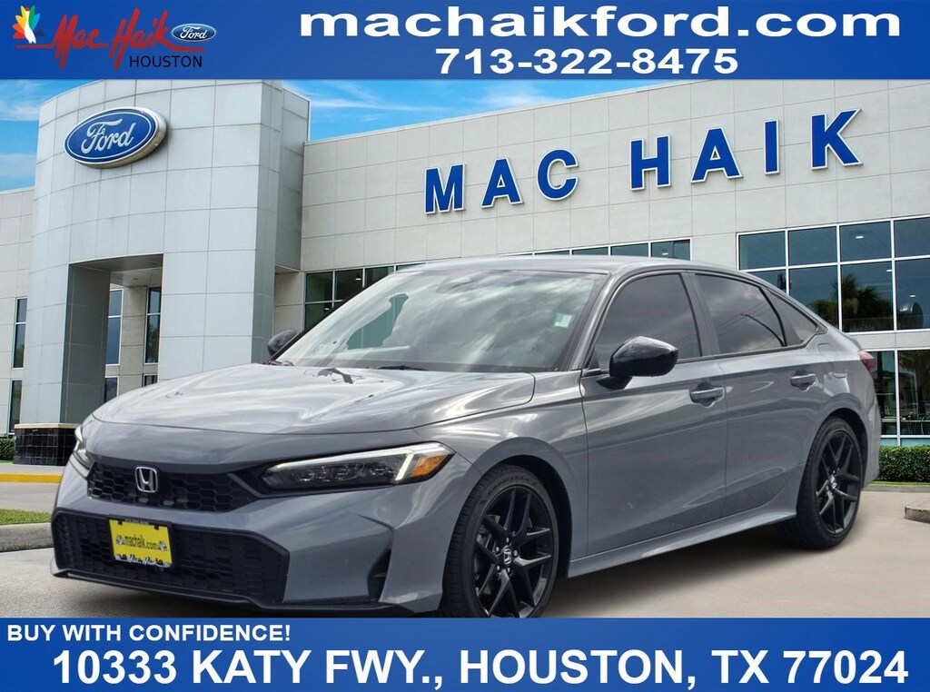 Why Buy From Mac Haik Ford Houston-- At Mac Haik Ford Houston, a family-owned and operated dealership proudly serving Houston for over 40 years, we make cars buy simple, transparent, and stress-free. ⢠Transparent Pricing â" No hidden fees, just honest, upfront pricing ⢠Competitive Deals â" Priced to compete with the best in the Texas market ⢠Easy Buying Process â" Shop, get pre-approved, and value your trade online ⢠Huge Selection â" New and Pre-owned and Certified vehicles ready to go ⢠Customer First â" Friendly, no-pressure experience ⢠Service You Can Count On â" Weâre here long after the sale. Vehicle Specs: Civic Sport, 4D Sedan, 2.0L I4 DOHC 16V, CVT, FWD, Urban Gray Pearl, Black w/Cloth/Leatherette Seating Surfaces, 4-Wheel Disc Brakes, 8 Speakers, ABS brakes, Adaptive Cruise Control: Adaptive Cruise Control (ACC) with Low-Speed Follow, Air Conditioning, Alloy wheels, AM/FM radio, Apple CarPlay/Android Auto, Auto High-beam Headlights, Automatic temperature control, Blind Spot Information (BSI) System warning, Brake assist, Bumpers: body-color, Cloth/Leatherette Seating Surfaces, Delay-off headlights, Driver door bin, Driver vanity mirror, Dual front impact airbags, Dual front side impact airbags, Electronic Stability Control, Emergency communication system: HondaLink, Exterior Parking Camera Rear, Four wheel independent suspension, Front anti-roll bar, Front Bucket Seats, Front Center Armrest, Front reading lights, Fully automatic headlights, Heated door mirrors, Illuminated entry, Knee airbag, Leather Shift Knob, Leather steering wheel, Low tire pressure warning, Occupant sensing airbag, Outside temperature display, Overhead airbag, Panic alarm, Passenger door bin, Passenger vanity mirror, Power door mirrors, Power steering, Power windows, Radio data system, Radio: 180-Watt Audio System, Rear anti-roll bar, Rear seat center armrest, Rear side impact airbag, Rear window defroster, Remote keyless entry, Security system, Speed control, Speed-sensing steering, Split folding rear seat, Steering wheel mounted audio controls, Tachometer, Telescoping steering wheel, Tilt steering wheel, Traction control, Trip computer, and Wheels: 18" Gloss Black Alloy Dealer charges a $225 Document Preparation Fee for processing paperwork related to the sale. This is not a government fee. Tax, title, license, and registration fees are additional.