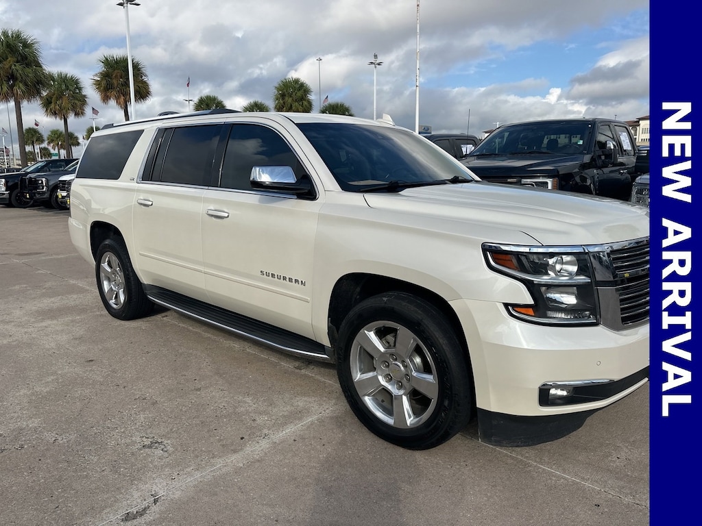Thanks for Looking. White Diamond Clearcoat 2015 Chevrolet Suburban LTZ RWD 6-Speed Automatic Electronic with Overdrive EcoTec3 5.3L V8 Clean Carfax, Suburban LTZ, 4D Sport Utility, EcoTec3 5.3L V8, 6-Speed Automatic Electronic with Overdrive, RWD, White Diamond Clearcoat, Cocoa/Dune w/Perforated Leather-Appointed Seat Trim, 3.42 Rear Axle Ratio, Integrated Trailer Brake Controller, Magnetic Ride Control Suspension Package, Max Trailering Package, Power Tilt-Sliding Sunroof w/Express-Open/Close, Rear Seat Entertainment System, Sun, Entertainment & Destinations Package.
