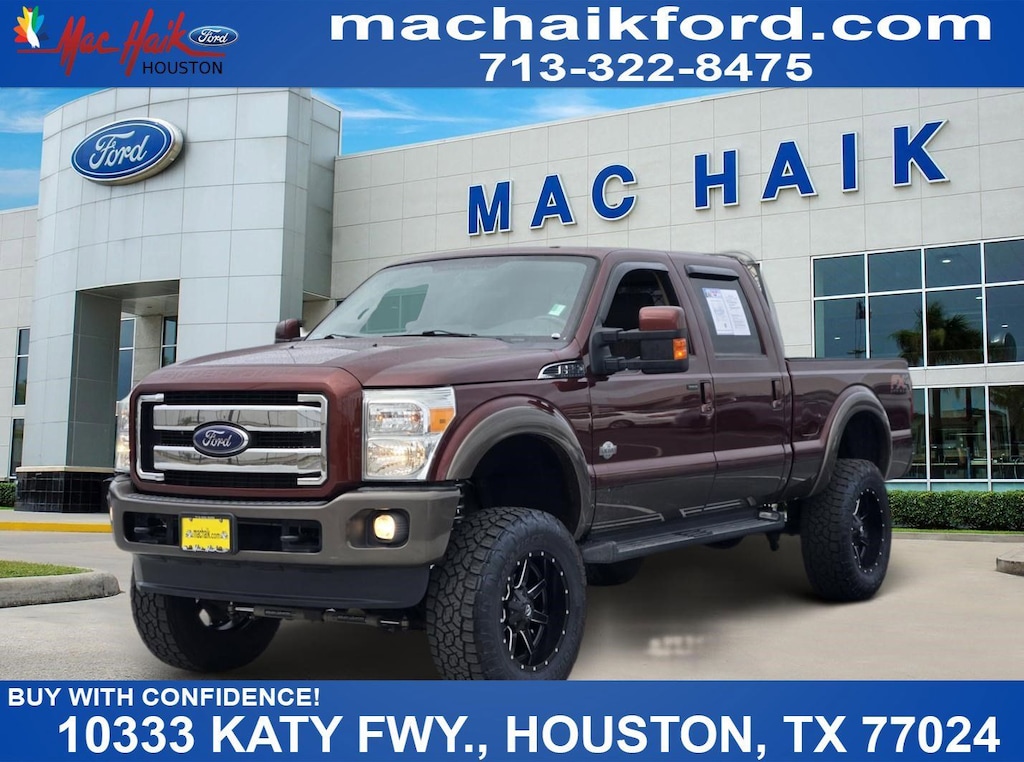 Why Buy From Mac Haik Ford Houston-- At Mac Haik Ford Houston, a family-owned and operated dealership proudly serving Houston for over 40 years, we make cars buy simple, transparent, and stress-free. ⢠Transparent Pricing â" No hidden fees, just honest, upfront pricing ⢠Competitive Deals â" Priced to compete with the best in the Texas market ⢠Easy Buying Process â" Shop, get pre-approved, and value your trade online ⢠Huge Selection â" New and Pre-owned and Certified vehicles ready to go ⢠Customer First â" Friendly, no-pressure experience ⢠Service You Can Count On â" Weâre here long after the sale. Vehicle Specs: FX4 Off-Road Package (Colored Front & Rear Rancho Branded Shocks and Hill Descent Control), King Ranch Package (Accent Color Front Bumper, Accent Color Rear Bumper w/Step Pad, Accent-Color Illuminated Angular Running Bars, Body Color Mirror Caps on PowerScope Mirrors, Body-Color Lower Bodyside Moldings, King Ranch Chaparral Lthr-Wrapped Steering Wheel, Memory Power Adjustable Pedals, Painted Body Color Grille w/Chrome Insert, PowerScope Trailer Tow Mirrors, Remote Start System, Unique Door Trim Panels, Unique King Ranch Leather 40/Console/40 Front Seats, Universal Garage Door Opener, Voice-Activated Navigation, and Wheels: 18" Bright Machined Cast Aluminum), Order Code 608A, GVWR: 10,000 lb Payload Package, F-250 SuperDuty King Ranch, 4D Crew Cab, Power Stroke 6.7L V8 DI 32V OHV Turbodiesel, TorqShift 6-Speed Automatic with Overdrive, 4WD, Bronze Fire Metallic, Adobe w/Unique King Ranch Leather 40/Console/40 Front Seats, 10 Speakers, 3.73 Axle Ratio, 4-Wheel Disc Brakes, ABS brakes, Adjustable pedals, Air Conditioning, Alloy wheels, AM/FM radio: SiriusXM, Auto-dimming Rear-View mirror, Automatic temperature control, Brake assist, Bumpers: chrome, CD player, Compass, Delay-off headlights, Driver door bin, Driver vanity mirror, Dual front impact airbags, Dual front side impact airbags, Electronic Locking w/3.55 Axle Ratio, Electronic Stability Control, Engine Block Heater, Exterior Parking Camera Rear, Extra Heavy-Duty 200-Amp Alternator, Front anti-roll bar, Front Bucket Seats, Front Center Armrest, Front dual zone A/C, Front fog lights, Front reading lights, Fully automatic headlights, Heated door mirrors, Illuminated entry, Leather steering wheel, Low tire pressure warning, Outside temperature display, Overhead airbag, Overhead console, Panic alarm, Passenger door bin, Passenger vanity mirror, Power door mirrors, Power driver seat, Power Moonroof, Power passenger seat, Power steering, Power windows, Premium audio system: Sony, Premium Leather Seating Surfaces 40/Console/40, Radio data system, Radio: Premium Sony Audio w/Single-CD/MP3, Rear Parking Sensors, Rear reading lights, Rear seat center armrest, Rear step bumper, Rear window defroster, Remote keyless entry, Security system, SiriusXM Satellite Radio, Speed control, Split folding rear seat, Steering wheel mounted audio controls, SYNC w/MyFord Touch & SYNC Services, Tachometer, Tailgate Step & Handle, Telescoping steering wheel, Tilt steering wheel, Traction control, Trip computer, Turn signal indicator mirrors, Upfitter Switches (4), Variably intermittent wipers, Wheel Well Liner (Pre-Installed), and Wheels: 20" Premium Cast Aluminum w/King Ranch.