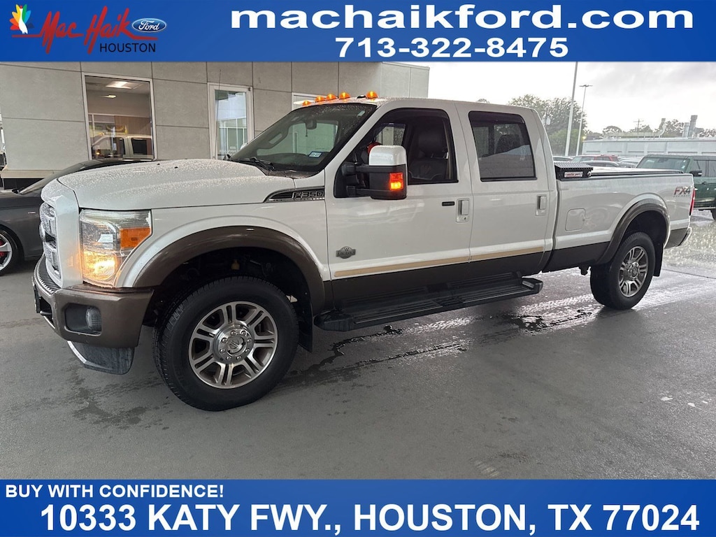 Why Buy From Mac Haik Ford Houston-- At Mac Haik Ford Houston, a family-owned and operated dealership proudly serving Houston for over 40 years, we make cars buy simple, transparent, and stress-free. ⢠Transparent Pricing â" No hidden fees, just honest, upfront pricing ⢠Competitive Deals â" Priced to compete with the best in the Texas market ⢠Easy Buying Process â" Shop, get pre-approved, and value your trade online ⢠Huge Selection â" New and Pre-owned and Certified vehicles ready to go ⢠Customer First â" Friendly, no-pressure experience ⢠Service You Can Count On â" Weâre here long after the sale. Vehicle Specs: FX4 Off-Road Package (Colored Front & Rear Rancho Branded Shocks and Hill Descent Control), King Ranch Package (Accent Color Front Bumper, Accent Color Rear Bumper w/Step Pad, Accent-Color Illuminated Angular Running Bars, Body Color Skull Caps on PowerScope Mirrors, Body-Color Lower Bodyside Moldings, King Ranch Leather-Wrapped Steering Wheel, Memory Power Adjustable Pedals, Painted Body Color Grille w/Chrome Insert, Remote Start System, Unique Door Trim Panels, Unique King Ranch Leather 40/Console/40 Front Seats, Universal Garage Door Opener, Voice-Activated Navigation, and Wheels: 18" Bright Machined Cast Aluminum), Order Code 618A, F-350 SuperDuty King Ranch, 4D Crew Cab, Power Stroke 6.7L V8 DI 32V OHV Turbodiesel, TorqShift 6-Speed Automatic, 4WD, White Platinum Metallic Tri-Coat, Adobe w/Premium Leather Seating Surfaces 40/Console/40, ABS brakes, Alloy wheels, Compass, Electronic Locking w/3.55 Axle Ratio, Electronic Stability Control, Front dual zone A/C, Heated door mirrors, Illuminated entry, Low tire pressure warning, Remote keyless entry, Traction control, 10 Speakers, 4-Wheel Disc Brakes, Adjustable pedals, Air Conditioning, AM/FM radio: SiriusXM, Auto-dimming Rear-View mirror, Automatic temperature control, Brake assist, Bumpers: chrome, CD player, Delay-off headlights, Driver door bin, Driver vanity mirror, Dual front impact airbags, Dual front side impact airbags, Exterior Parking Camera Rear, Extra Heavy Duty 200-Amp Alternator, Front anti-roll bar, Front Bucket Seats, Front Center Armrest, Front fog lights, Front reading lights, Fully automatic headlights, Leather steering wheel, Outside temperature display, Overhead airbag, Overhead console, Panic alarm, Passenger door bin, Passenger vanity mirror, Power door mirrors, Power driver seat, Power passenger seat, Power steering, Power windows, Premium audio system: Sony, Premium Leather Seating Surfaces 40/Console/40, Radio data system, Radio: Premium Sony Audio w/Single-CD/MP3, Rear Parking Sensors, Rear reading lights, Rear seat center armrest, Rear step bumper, Rear window defroster, Security system, SiriusXM Satellite Radio, Speed control, Split folding rear seat, Steering wheel mounted audio controls, SYNC w/MyFord Touch & SYNC Services, Tachometer, Telescoping steering wheel, Tilt steering wheel, Trip computer, Turn signal indicator mirrors, and Variably intermittent wipers.