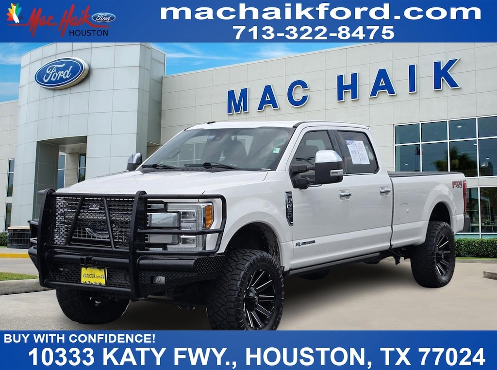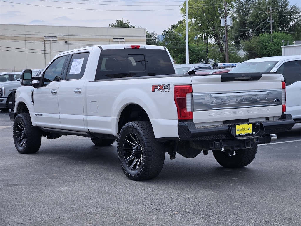 Thanks for Looking. White Platinum 2019 Ford F-350SD Platinum 4WD TorqShift 6-Speed Automatic Power Stroke 6.7L V8 DI 32V OHV Turbodiesel Lift Kit, New Tires, 4WD, 5th Wheel/Gooseneck Hitch Prep Package, Adaptive Cruise Control & Collision Warning, FX4 Off-Road Package, Hill Descent Control, Lane-Keeping Alert, Off-Road Specifically Tuned Shock Absorbers, Order Code 713A, Platinum Ultimate Package, Twin Panel Power Moonroof, Ultimate Trailer Tow Camera System, Unique FX4 Off-Road Box Decal.