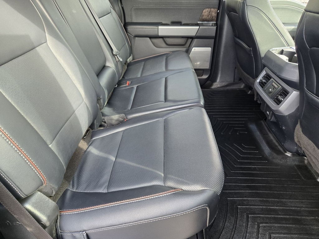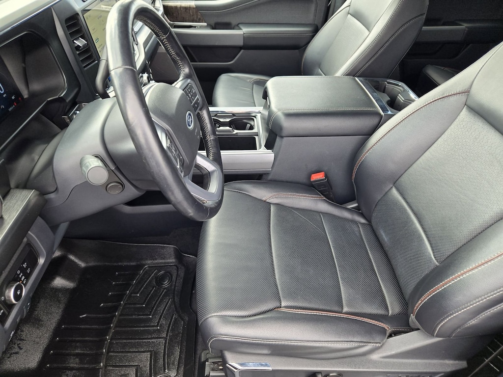 Chrome Package (6" Angular Bright Anodized Step Bars, Chrome Door Handles, Chrome Exhaust Tip, Unique Chrome Mirror Caps, and Wheels: 20" Chrome PVD Aluminum), FX4 Off-Road Package (Hill Descent Control, Off-Road Specifically Tuned Shock Absorbers, and Unique FX4 Off-Road Box Decal), Order Code 618A, F-350 SuperDuty Lariat, 4D Crew Cab, Power Stroke 6.7L V8 DI 32V OHV Turbodiesel, 10-Speed Automatic, 4WD, Agate Black Metallic, Black Onyx w/Front Leather-Trimmed 40/Console/40 Seats, 190 Amp Alternator, 4-Wheel Disc Brakes, 410 Amp Dual Alternators, 8 Speakers, ABS brakes, Adjustable pedals, Air Conditioning, Alloy wheels, AM/FM radio: SiriusXM with 360L, Auto High-beam Headlights, Auto tilt-away steering wheel, Auto-dimming Rear-View mirror, Automatic temperature control, Brake assist, Bumpers: chrome, Compass, Delay-off headlights, Driver door bin, Driver vanity mirror, Dual 68 AH/65 AGM Batteries, Dual front impact airbags, Dual front side impact airbags, Electronic Stability Control, Emergency communication system: SYNC 4 911 Assist, Exterior Parking Camera Rear, Flow-Through Console, Front anti-roll bar, Front Bucket Seats, Front Center Armrest, Front dual zone A/C, Front fog lights, Front Leather-Trimmed 40/Console/40 Seats, Front License Plate Bracket, Front reading lights, Fully automatic headlights, Garage door transmitter, Heated door mirrors, Heated front seats, Heated rear seats, Heated steering wheel, Illuminated entry, Individual Trailer TPMS (Pre-Installed), Leather steering wheel, Low tire pressure warning, Memory seat, Navigation system: Connected Navigation, Outside temperature display, Overhead airbag, Overhead console, Panic alarm, Passenger door bin, Passenger vanity mirror, Pedal memory, Power door mirrors, Power driver seat, Power passenger seat, Power steering, Power windows, Power-Deployable Running Boards, Radio: B&O Sound System by Bang & Olufsen, Rain sensing wipers, Rapid-Heat Supplemental Cab Heater, Rear reading lights, Rear seat center armrest, Rear step bumper, Rear window defroster, Remote keyless entry, Security system, SiriusXM Radio w/360L, Speed control, Split folding rear seat, Steering wheel memory, Steering wheel mounted audio controls, SYNC 4 w/Enhanced Voice Recognition, Tachometer, Tailgate Step & Handle, Telescoping steering wheel, Tilt steering wheel, Traction control, Trip computer, Turn signal indicator mirrors, Variably intermittent wipers, Ventilated front seats, Wheel Locks (Pre-Installed), and Wheels: 18" Bright Machined & Carbonized Gray Alum.