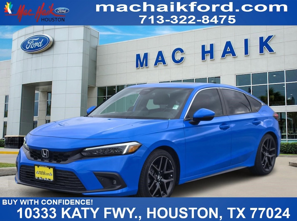 Why Buy From Mac Haik Ford Houston-- At Mac Haik Ford Houston, a family-owned and operated dealership proudly serving Houston for over 40 years, we make cars buy simple, transparent, and stress-free. ⢠Transparent Pricing â" No hidden fees, just honest, upfront pricing ⢠Competitive Deals â" Priced to compete with the best in the Texas market ⢠Easy Buying Process â" Shop, get pre-approved, and value your trade online ⢠Huge Selection â" New and Pre-owned and Certified vehicles ready to go ⢠Customer First â" Friendly, no-pressure experience ⢠Service You Can Count On â" Weâre here long after the sale. Vehicle Specs: Civic Sport Touring, 4D Hatchback, 1.5L I4 DOHC 16V, CVT, FWD, Boost Blue Pearl, Black w/Leather-Trimmed Seating Surfaces, Navigation system: Honda Satellite-Linked Navigation System, 12 Speakers, 18" Alloy Wheels, 4-Wheel Disc Brakes, ABS brakes, Adaptive Cruise Control: Adaptive Cruise Control (ACC) with Low-Speed Follow, Air Conditioning, Alloy wheels, AM/FM radio: SiriusXM, Apple CarPlay/Android Auto, Auto High-beam Headlights, Auto-dimming Rear-View mirror, Automatic temperature control, Blind Spot Information (BSI) System warning, Brake assist, Bumpers: body-color, Compass, Delay-off headlights, Driver door bin, Driver vanity mirror, Dual front impact airbags, Dual front side impact airbags, Electronic Stability Control, Emergency communication system: HondaLink, Exterior Parking Camera Rear, Four wheel independent suspension, Front anti-roll bar, Front Bucket Seats, Front Center Armrest, Front dual zone A/C, Front fog lights, Front reading lights, Fully automatic headlights, Garage door transmitter: HomeLink, Heated door mirrors, Heated Front Bucket Seats, Heated front seats, Illuminated entry, Knee airbag, Lane departure: Lane Keeping Assist System (LKAS) active, Leather Shift Knob, Leather steering wheel, Leather-Trimmed Seating Surfaces, Low tire pressure warning, Occupant sensing airbag, Outside temperature display, Overhead airbag, Overhead console, Panic alarm, Passenger door bin, Passenger vanity mirror, Power door mirrors, Power driver seat, Power moonroof, Power passenger seat, Power steering, Power windows, Radio data system, Radio: BOSE Premium Audio System, Rain sensing wipers, Rear anti-roll bar, Rear seat center armrest, Rear side impact airbag, Rear window defroster, Rear window wiper, Remote keyless entry, Security system, Speed control, Speed-sensing steering, Split folding rear seat, Steering wheel mounted audio controls, Tachometer, Telescoping steering wheel, Tilt steering wheel, Traction control, Trip computer, Turn signal indicator mirrors, Variably intermittent wipers, and Voltmeter Dealer charges a $225 Document Preparation Fee for processing paperwork related to the sale. This is not a government fee. Tax, title, license, and registration fees are additional.